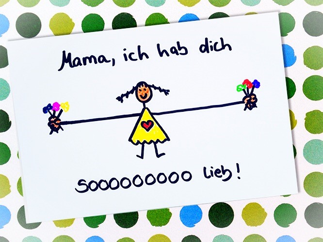 beachten) und die Karte hübsch beschriften. Dem Kind das bemalte Tonpapier
