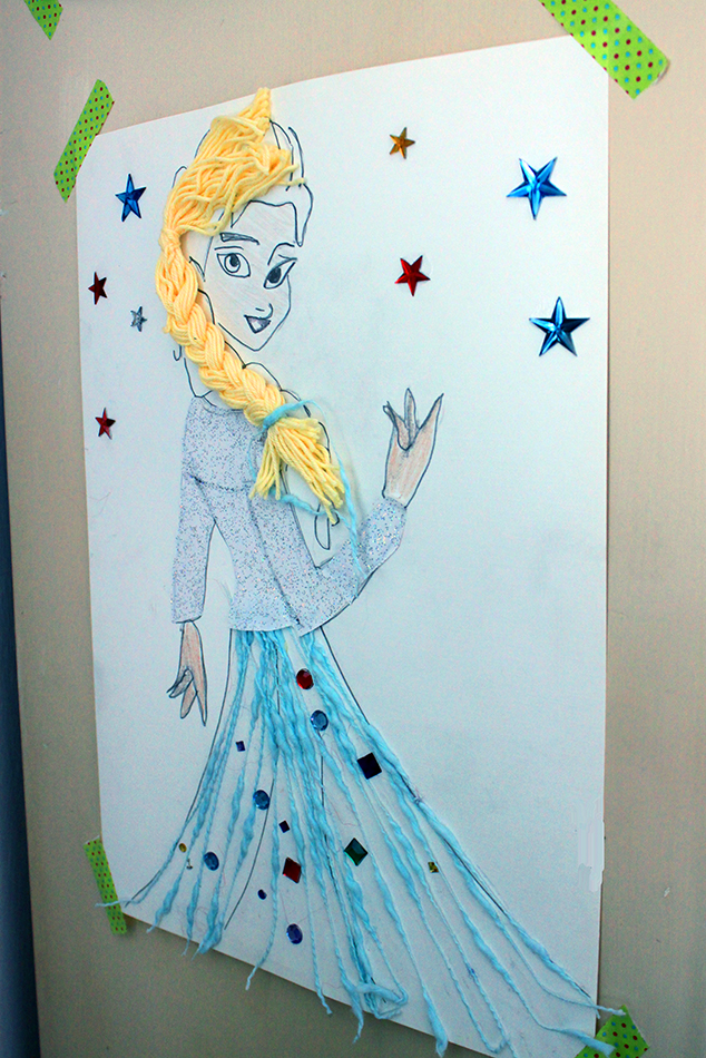Und während der wunderschöne Pippi-Kalender ein unbeachtetes Dasein an der Kinderzimmerwand fristet (ich werde ihn wohl ins Wohnzimmer hängen) und der Kleine Onkel nun Sabrina heißt, übernahm Elsa das Regiment. Nicht ohne die Mithilfe wackerer Kita-Erzieherinnen, die die Kinder in schöner Regelmäßigkeit mit Elsa-Ausmalbildern, Elsa-Pappmaschee-Figuren und Elsa-Frisuren mit passenden Spängchen und Haargummis nach Hause schicken.