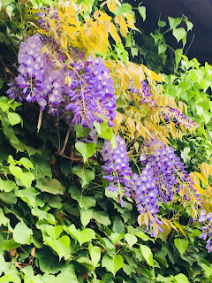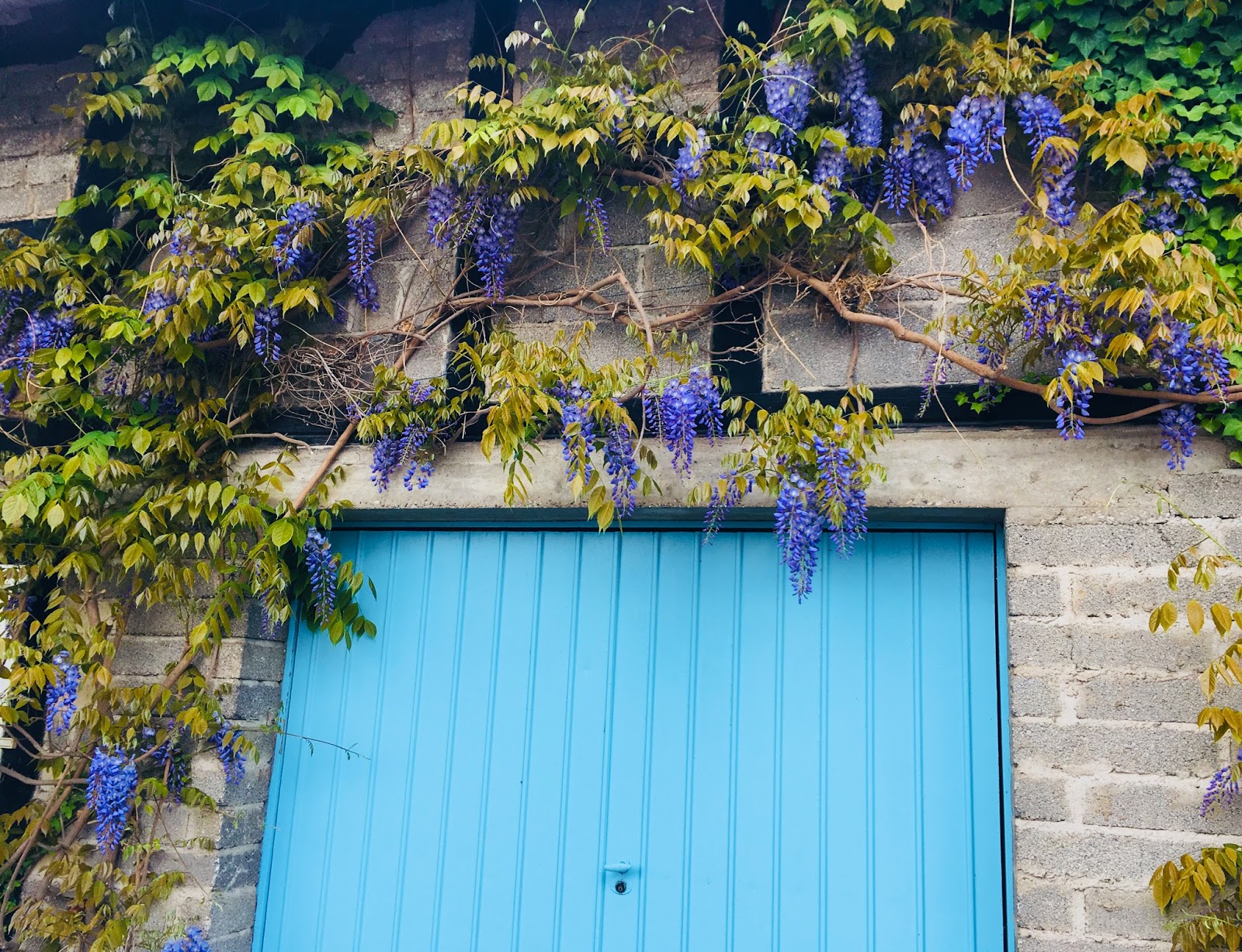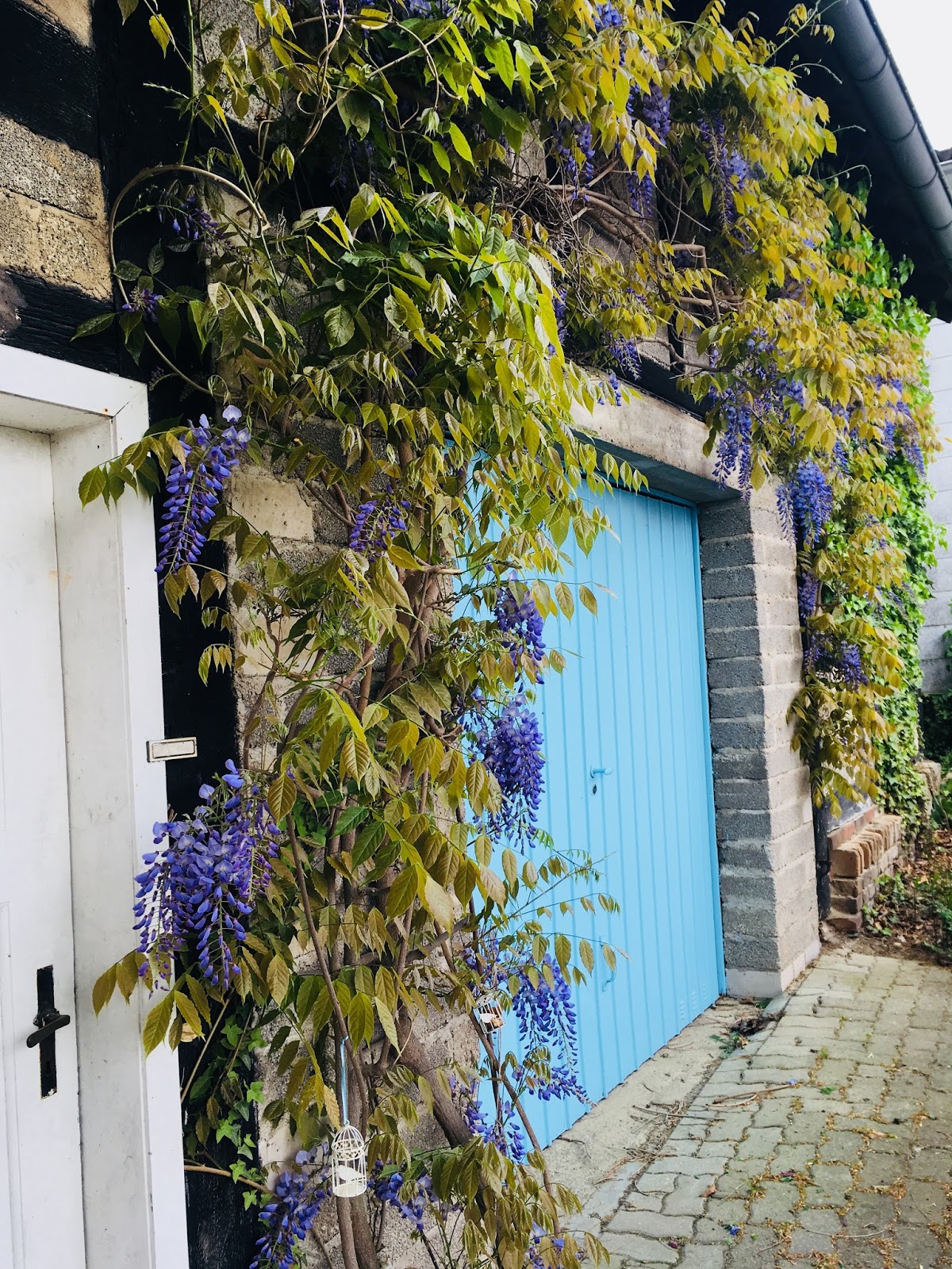 Die Regenart, die ich im Mai besonders liebe, heißt Blauregen oder auch Glyzinie. Die Rankpflanze ist ziemlich giftig, aber mit ihren langen blauen Blütenständen auch wunderschön. Da wir kein Krabbelkind mehr im Haus haben, darf unser Blauregen an der Scheune klettern und blühen soviel er will. In den letzten Jahren hat er allerdings mehr gegrünt als geblüht, weil er lange nicht geschnitten wurde.