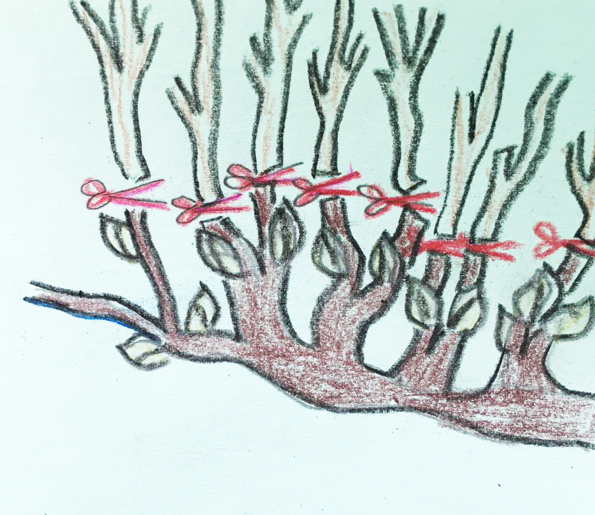 Schneidet die Triebe am Ende des Winters mit einer scharfen Baumschere etwa einen halben Zentimeter über der zweiten Knospe ab…