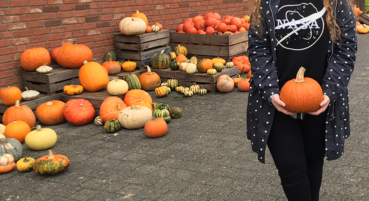 Beim Ausflug zum Gemüsebauern im Nachbardorf hatten wir eine Riesenauswahl und entschieden uns für ein paar Klassiker. Eigentlich lassen sich aber alle runden Kürbisse bearbeiten.