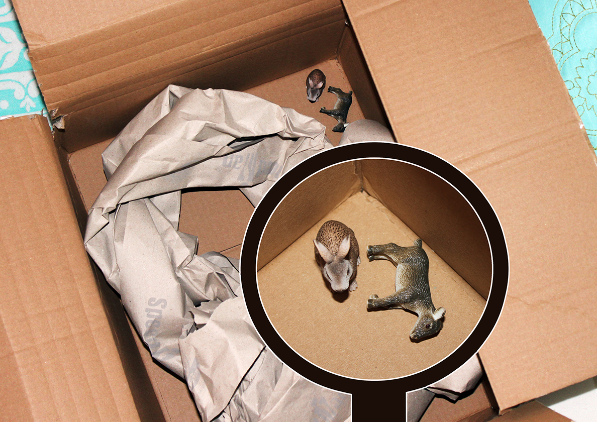 Jetzt verstehe ich natürlich, dass sich manchmal eine gewisse Kartongröße nicht vermeiden lässt. Zum Beispiel – äh – bei einem Paravent. Warum aber Pakete hier ankommen, die mindestens eine Mikrowelle vermuten lassen, sich dann aber als Transportkäfig für zwei zentimeterhohe Tierfigürchen erweisen, erschließt sich nicht auf den ersten Blick. Vielleicht kann mich jemand erhellen.